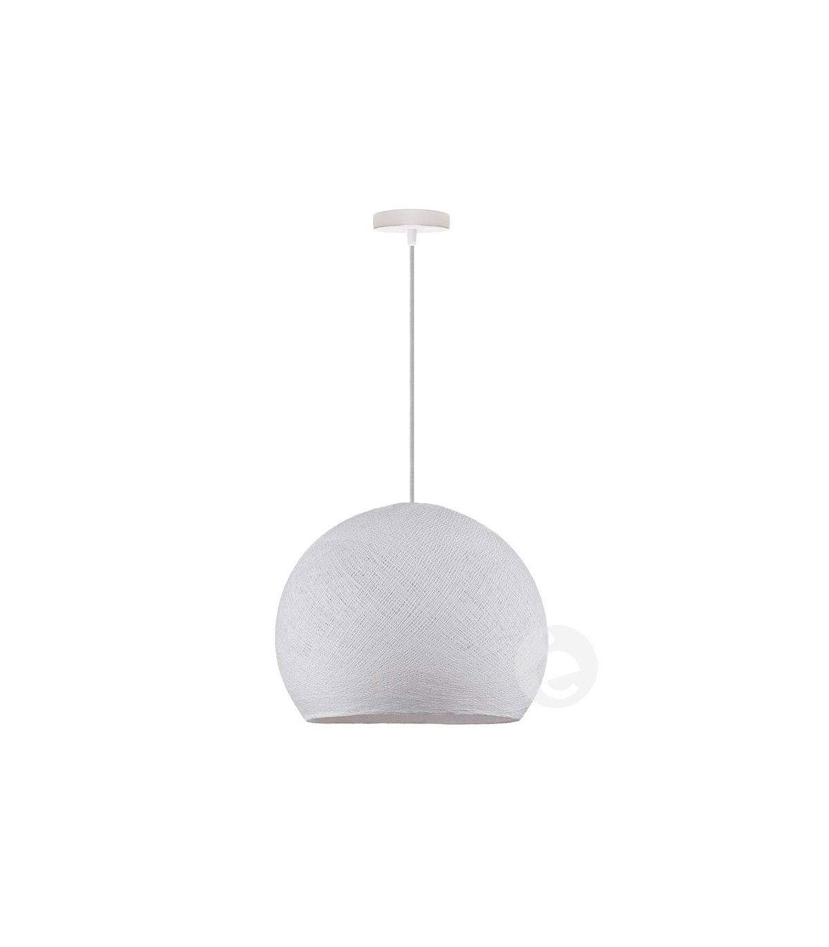 White wire dome shade, diameter 36 or 25 cm. The ball is supplied folded, with a balloon for inflation and assembly. Although it's very easy, don't forget to download the instructions from our website. Includes E27 bushing and bushing holder. Visit the cables section to choose yours and the ceiling mount. It is recommended to use an LED bulb.