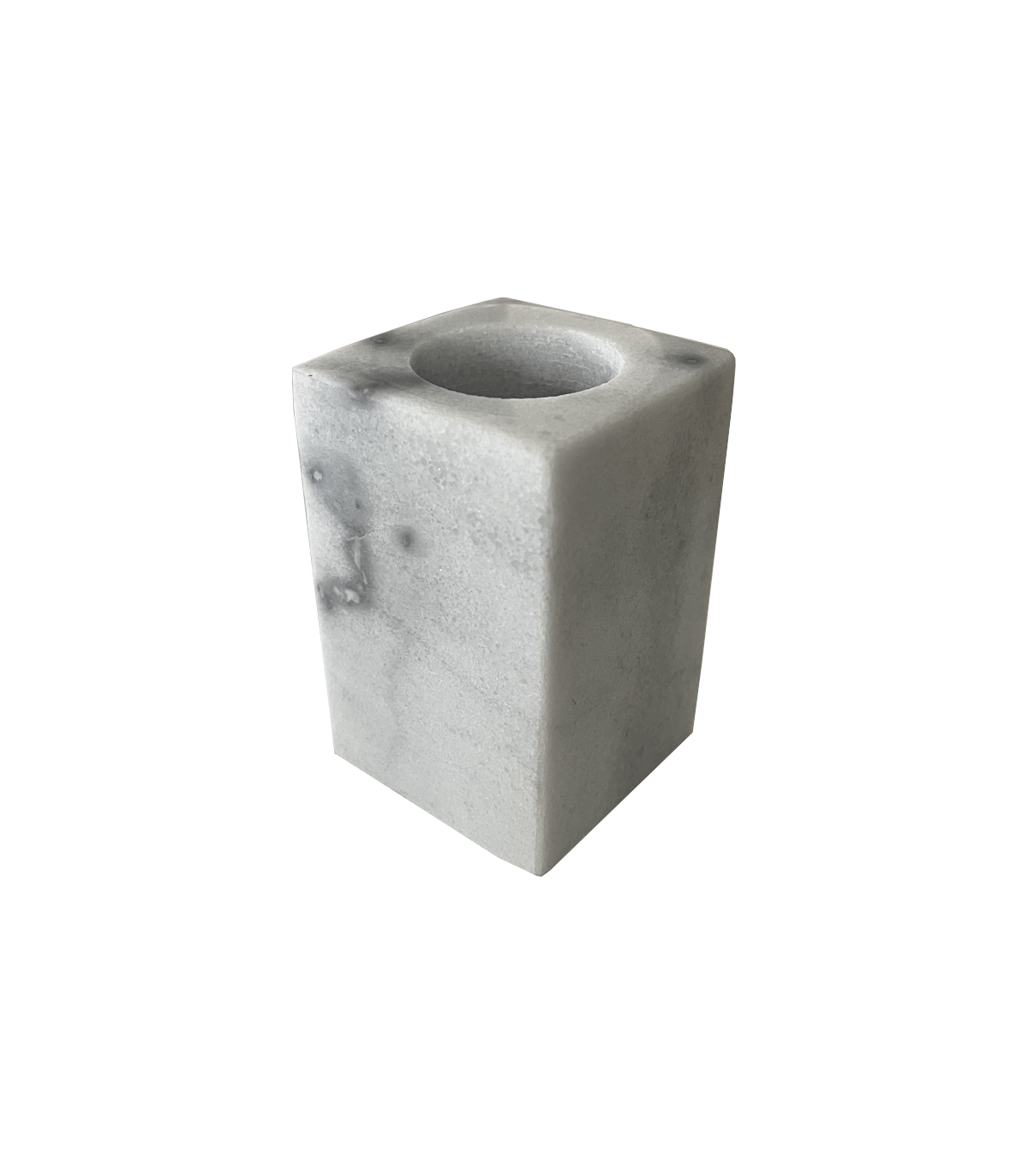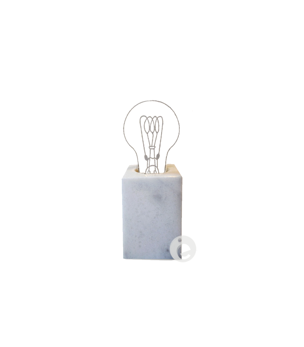 Square white marble base, 10 cm high and 6.5 cm wide, includes thermoplastic E27 lamp holder and accessories. Choose Cable, Switch, and Plug.