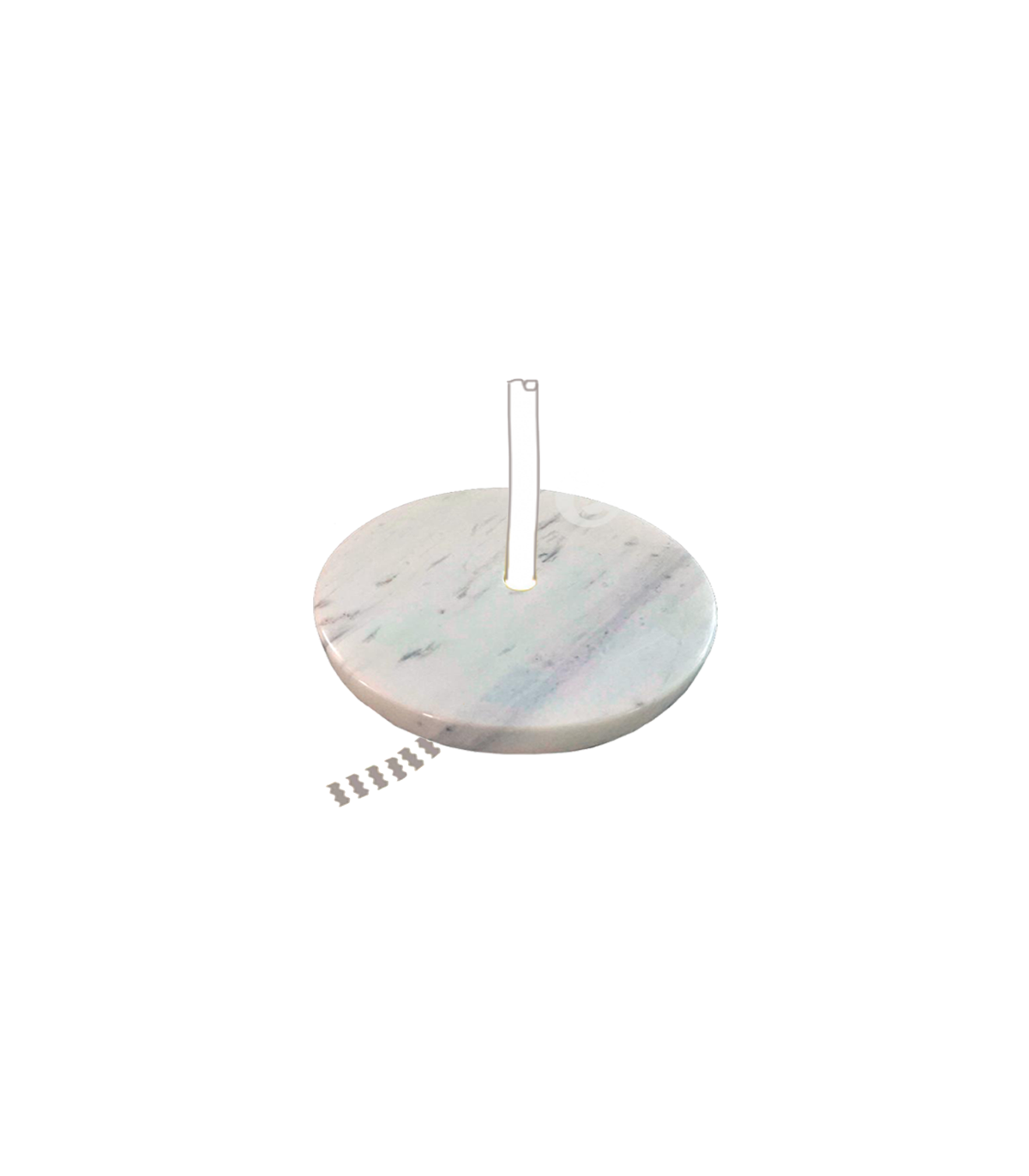 White marble base for lamp stand, 160 mm diameter and 19 mm high, with M10 central hole and groove for cable pass-through.