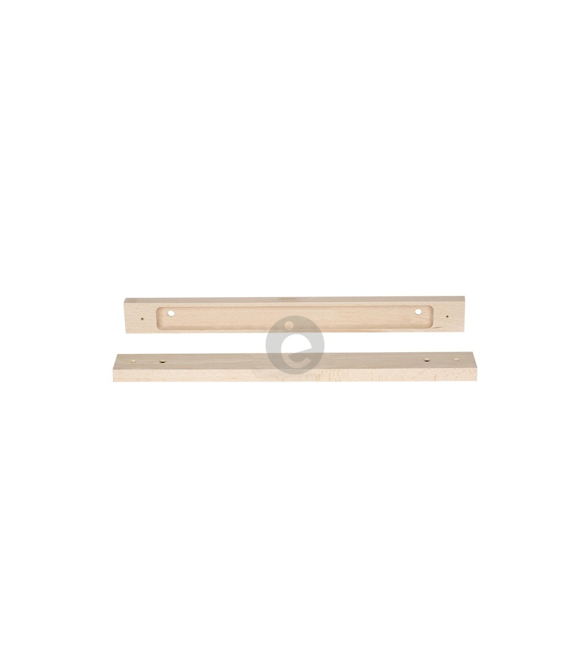 Rectangular wooden support. Length 50 cm, depth 5 cm and height 2.6 cm. Installation by means of screws. You can combine it with the wooden bushing cover
