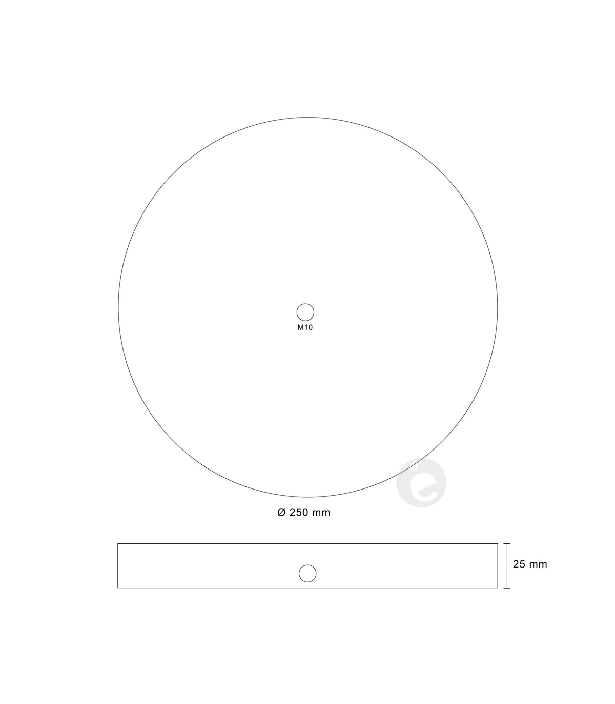 Brass base for floor lamp. Dimensions: 25 cm diameter by 2.5 cm high.